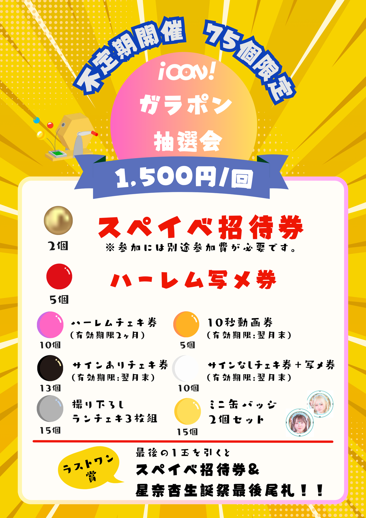・販売方法:終演後物販より販売します。前物販ではガラポン販売は致しません。