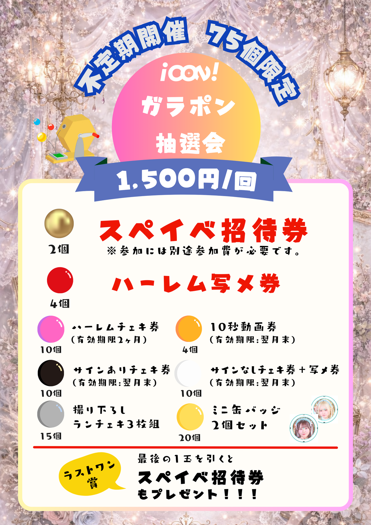 ・販売方法:終演後物販より販売します。前物販ではガラポン販売は致しません。