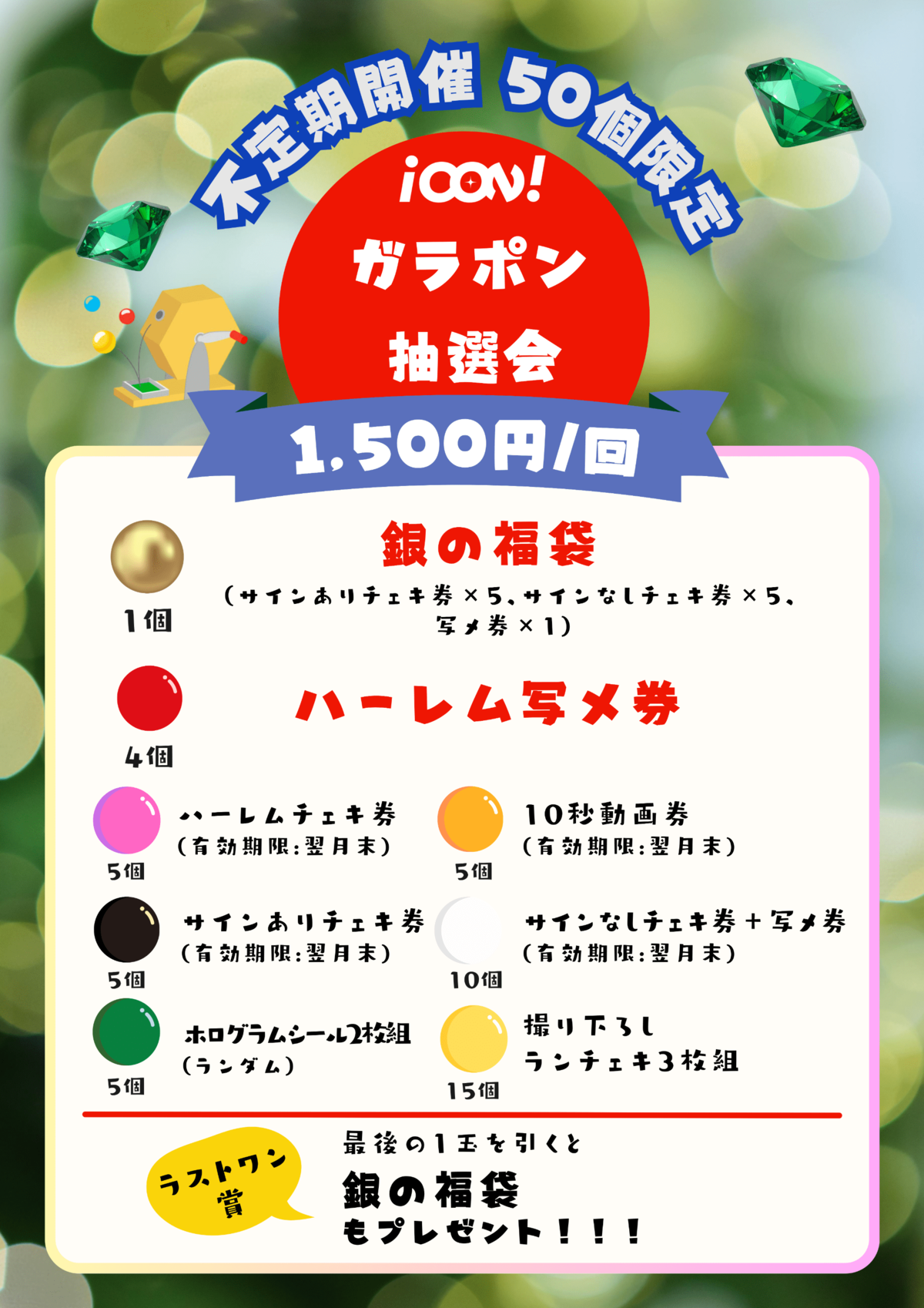 ・販売方法:終演後物販より販売します。前物販ではガラポン販売は致しません。