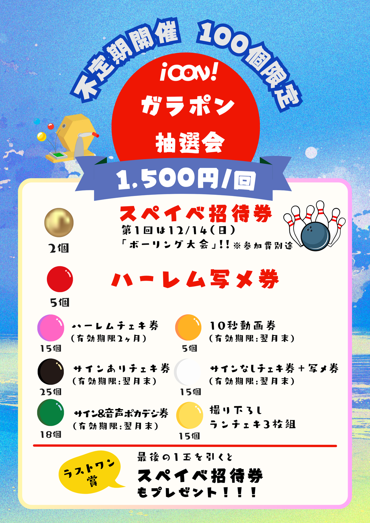 ・販売方法:終演後物販より販売します。前物販ではガラポン販売は致しません。