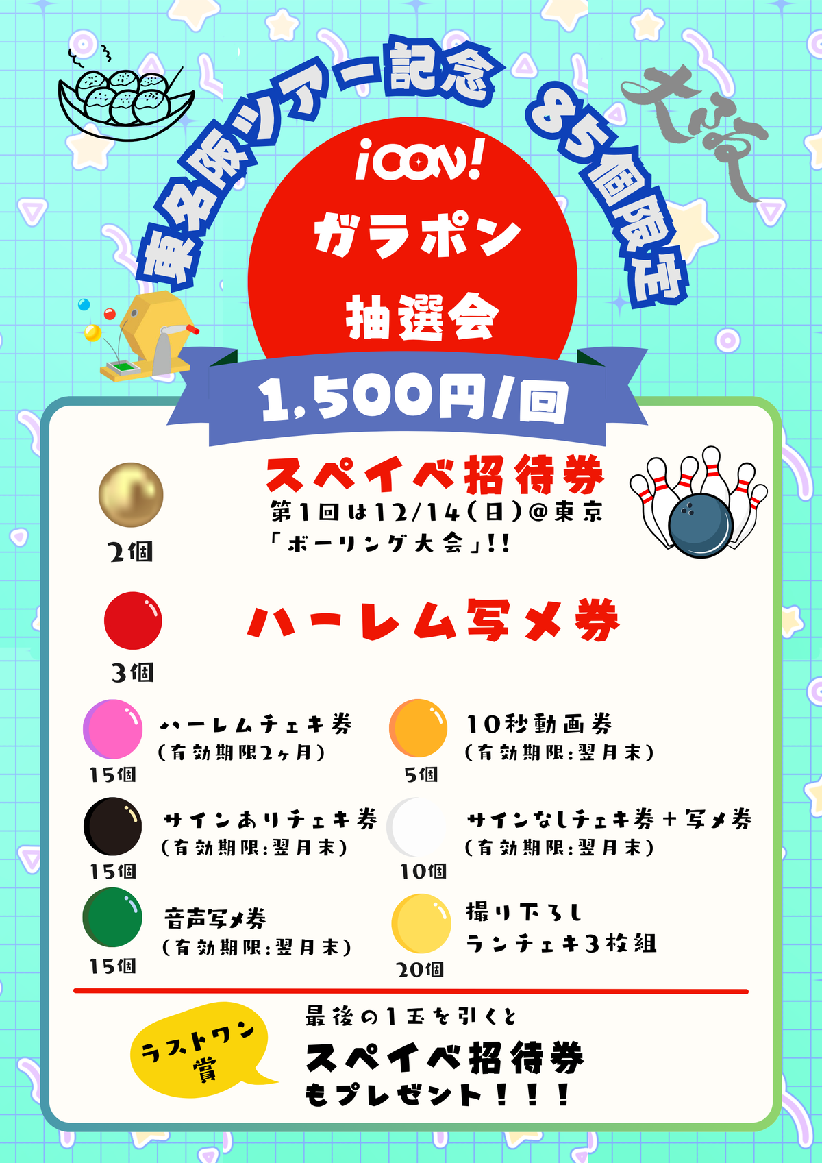 ・販売方法:終演後物販より販売します。前物販ではガラポン販売は致しません。