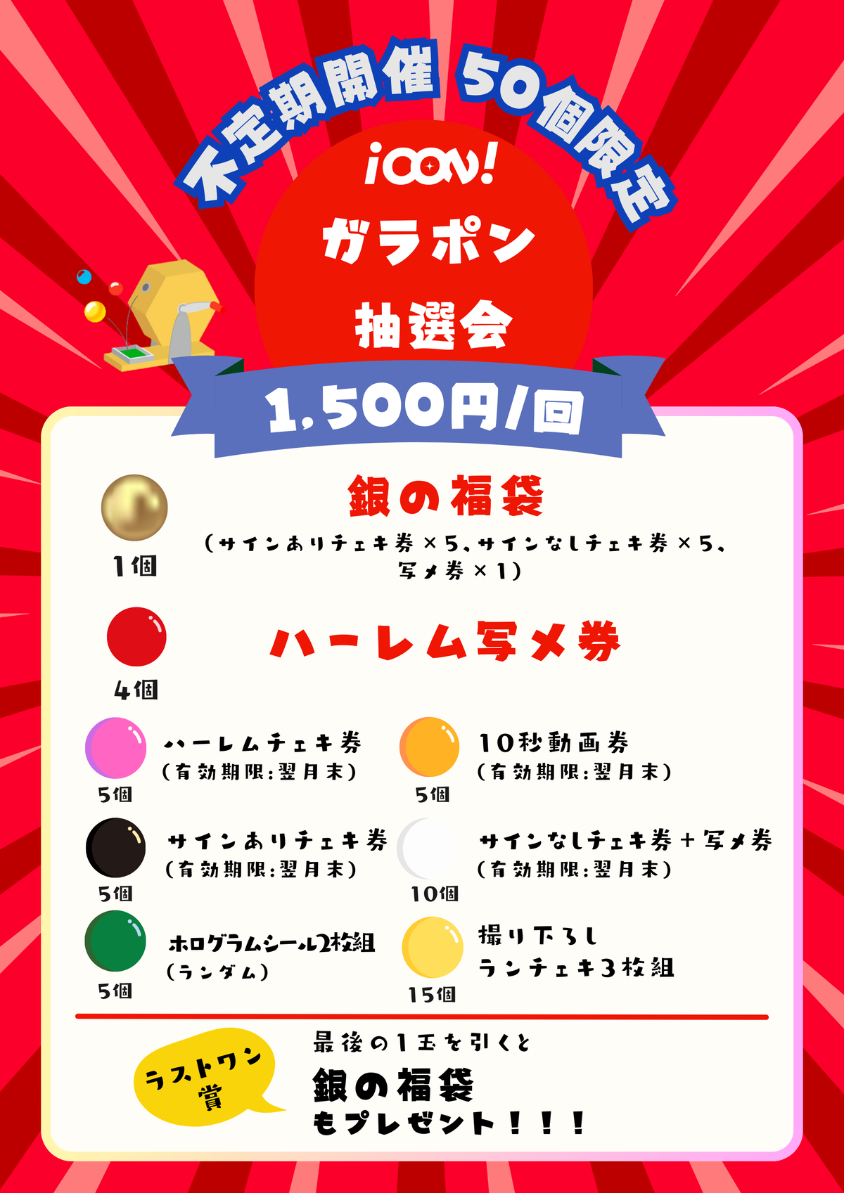 ・販売方法:終演後物販より販売します。前物販ではガラポン販売は致しません。